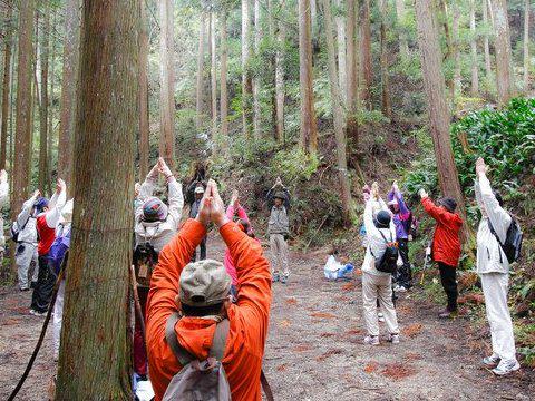 吉野町で行う「森林セラピー」は、吉野の歴史ある自然環境の中、ウォーキングやレクリエーション、呼吸法などといったプログラムを行いながら五感を開放し、精神的ストレスの軽減、心身の健康増進を図ります。